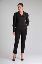 Отделка горловины рюшами и красивым бантом по спинке делает блузку отличным вариантом для нарядного и романтичного образа!