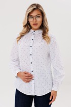 Эта классическая блузка отличается элегантным дизайном и вниманием к деталям. Блуза прямого силуэта, в боковых швах с разрезами, по переду с нагрудной вытачкой. Воротник-стойка, переходящий в бант. Рукав втачной, одношовный, снизу на манжете. Сверху по окату со сборкой.