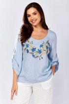 M&S Cotton Frill Neck Long Sleeve Shirt blue