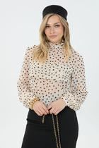 Струящаяся свободная блуза со стойкой-бантом.