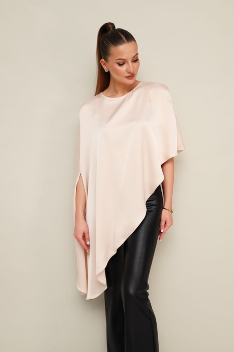 Блузка с ассиметричным кроем, выполнен из струящейся ткани с благородным матовым блеском. Элемент одежды, который создает множество вариантов стилизации образов.