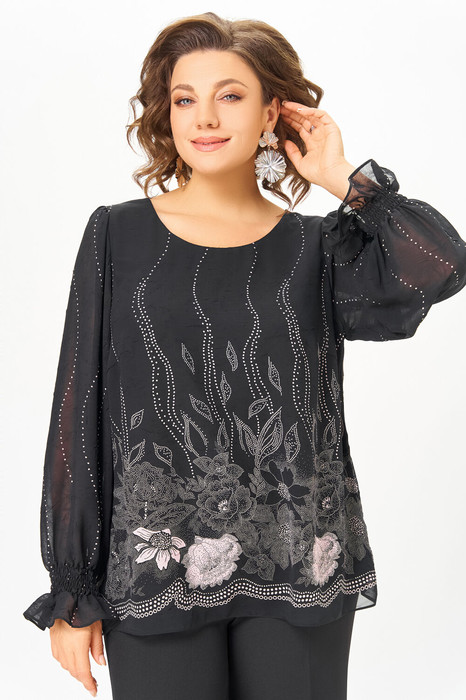 Блуза Swallow 803.4 Чёрный, принт нежно- розовые цветы
