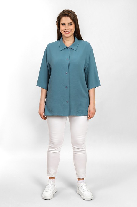 Совместные покупки Челябинск Женская одежда Блузки, рубашки — Блуза Жаркий сезон-1 БЛ-018 ПЕТРОЛЬ