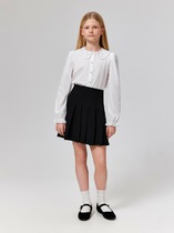 Трикотажный блуза из линейки VAY KIDS школа. Отложной воротничок, застежка на пуговицы с ажурной отделкой.