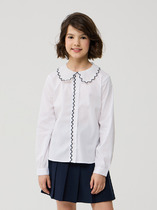 Трикотажная блуза из линейки VAY KIDS школа. Отложной воротничок с застежкой на пуговицы и ажурной отделкой.