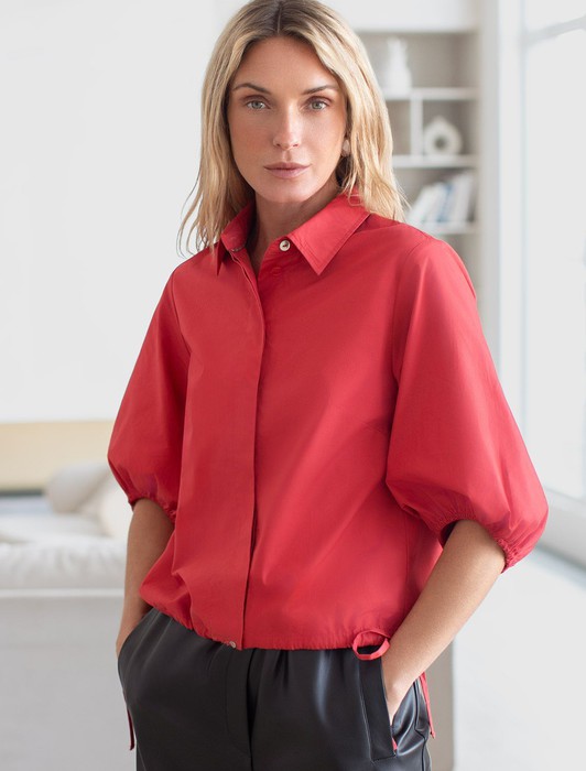 Состав: 100%Хлопок Параметры модели на первом фото: Рост 170, бюст 89, талия 63, бедра 92 Размер товара на первом фото: 42Укороченная блузка с пышными рукавами-фонариками выполнена из легкого хлопкового поплина. Супатная застежка на пуговицы из натурального перламутра. Внизу кулиса с лентами из основного полотна. В изделии будет комфортно, даже в самое жаркое время года. Подходит для любой фигуры. Сочетается в костюме с кюлотами D24.233 и юбкой D26.179