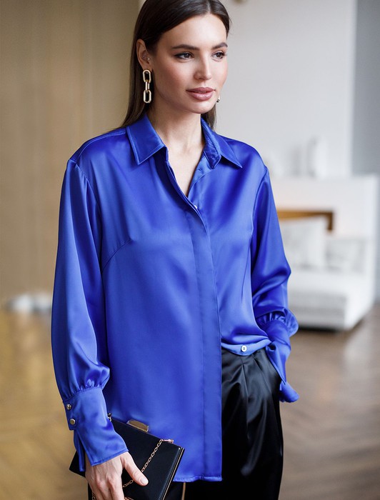 Блузка из плотного полуматового сатина с удлиненным манжетом
