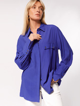 Блузка прямого силуэта из плательно-блузочной ткани софт с V-образным вырезом.