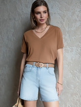 Vilatte Футболка из премиального хлопка с эластаном D49.096 карамель