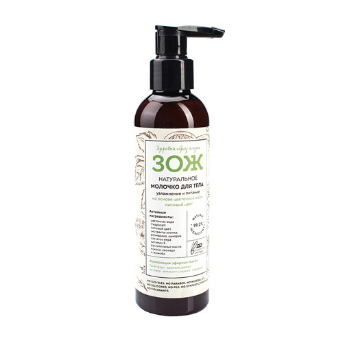 Функциональные компоненты: цветочная вода (гидролат) липовый цвет, экстракты хлопка, розмарина, цикория, сок алоэ вера, витамин Е, растительные масла кокоса, авокадо и жожоба.