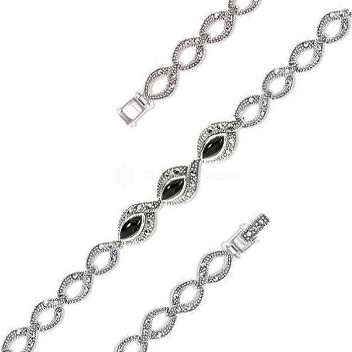 Браслет из чернёного серебра с ониксом и марказитами - 18 см