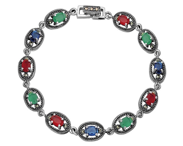 Браслет, марказит , синт.изумруд , синт.рубин , синт.сапфир, SL-AGA1451