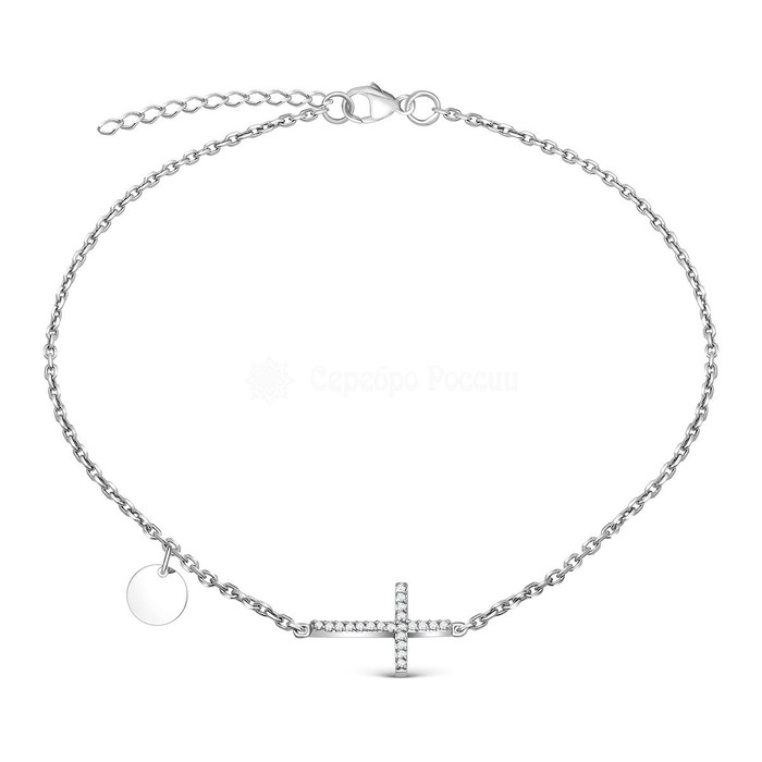 Браслет на ногу из серебра с фианитами родированный