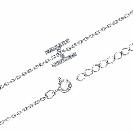 Браслет с фианитом родированный серебро 925*