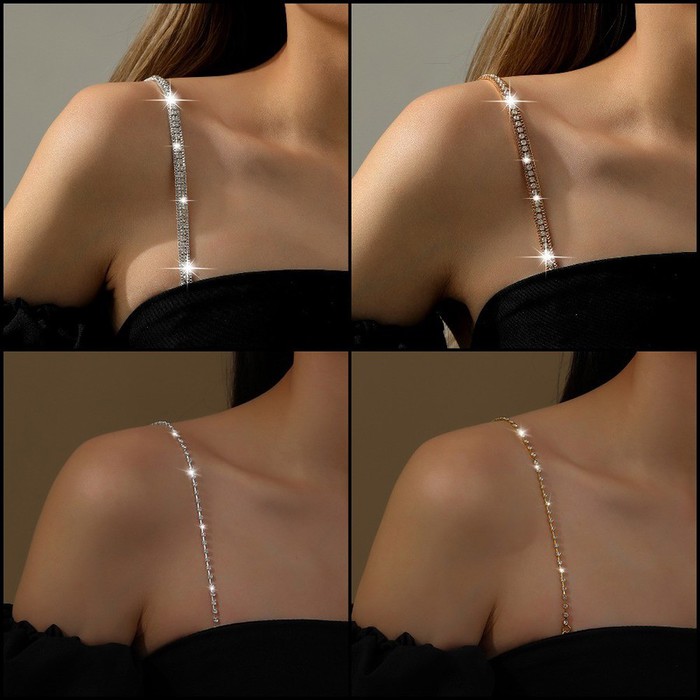 Бретели для бюстгальтера со стразами добавят изюминку в ваш гардероб. Декоративные лямки хорошо гармонируют с одеждой с открытыми плечами. Эти лямки для бюстгальтера не только функциональны, но и являются настоящим украшением, которое сделает ваш лифчик, топ или корсет еще более привлекательным и сексуальным.Если вы выбрали вечернее платье или лифчик без бретелек, чтобы выгодно подчеркнуть свое изящное декольте - бретели со стразами помогут вам в этом, вы будете выглядеть притягательно и сексуально.Бретели со стразами имеют удобную систему крепления на нижнем белье или одежде.Длина лямок - 44,5 см. (28,5 см. декоративная часть + 16 см. цепь для регулировки (См. фото))