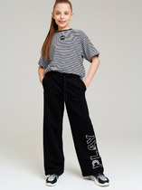 Брюки-кюлоты с декоративными защипами спереди, выполненные из легкой вискозной ткани с эффектом денима. Талия на эластичной резинке, декорирована складками и поясом. Застежка на молнию и крючок, боковые карманы.На ребенке представлен размер 140:- Ширина изделия по линии талии 30 см- Ширина изделия по линии бедер 43 см- Длина внутреннего шва 44 смРазница между размерами составляет 1,5 см.