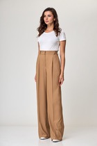 Элегантные, с высокой посадкой и красивым облеганием бедра брюки. Застроченные стрелки прилают стройности и шика. Низ брюк умеренно широкий. Ноги при таком крое учеличиваются в длине. Застежка на потайную тесьму-молнию в боковом шве