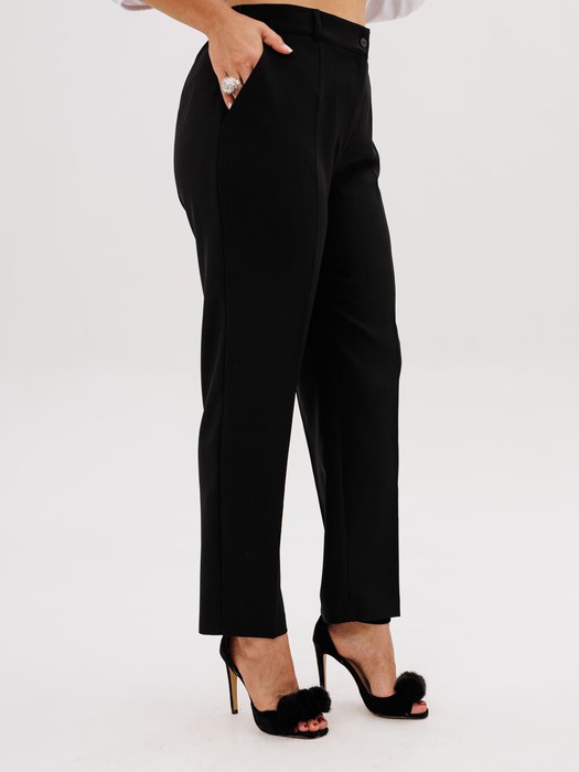 На модели в черных брюках «тень» белая блуза 1676.