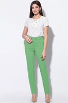 Эти брюки станут глотком свежего воздуха среди широких силуэтов и брюк палаццо. Их облегающий крой подчёркивает линию бедёр и тали, а затем изящно расклешается от колена.Такой фасон позволит скорректировать фигуру и подойдёт для строго дресс кода. Вертикальные линии по центру брючин вытягивают силуэт и удлиняют ноги. Застёжка классическая - молния и пуговица в цвет изделия.