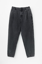 Джинсы из "мраморного"  хлопка, с четырьмя функциональными карманами и поясом с резинкой на спинке. Боковые швы брюк переходят на перед. Изделие проходит энзимную стирку.