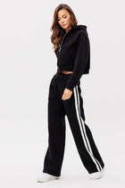 Брюки-шаровары из эко-кожи свободного силуэта, зауженные к низу, на притачном отсроченном поясе со вставленной в него резинкой. Полочка с карманом в рельефе. По переду и спинке фигурные рельефы.