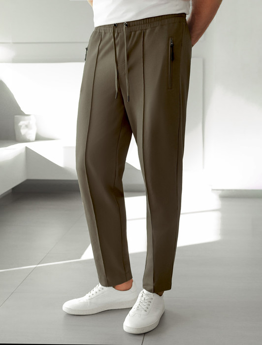 Состав: 75%Хлопок 20%ПЭ 5%ПУ Размер товара на первом фото: 42Свободные джоггеры цвета хаки созданы для максимального комфорта на каждый день. Брюки выполнены из натуральной ткани — премиального футера двухнитки, дополнены эластичным поясом со шнуром, двумя карманами на молнии по боками и задним карманом с минималистичной вышивкой в тон брюкам. Перевод надписи Wanderlust - Страсть к путешествиям . Брюки визуально вытягивают силуэт за счет декоративных застроченных стрелок. Эластичный качественный хлопок обеспечивает приятное ощущение, прилегая к телу, а также позволяет коже дышать. Ткань отличается высокой износостойкостью, не деформируется после стирки, сохраняет форму и внешний вид даже при активной носке. Повседневные спортивные штаны подходят для любого роста и комплекции благодаря представленной широкой размерной линейке. Подойдут на худых парней и мужчин в теле. Брюки правильного кроя, будут удобными для повседневной носки, не стесняя движений - идеальный выбор для отдыха дома, путешествий, для активной работы или прогулок. Трикотажные зауженные брюки отлично сочетаются с разными стилями одежды: от спортивного до кэжуал, с футболками и свитшотами. Это незаменимые джоггеры в современном гардеробе мужчины.