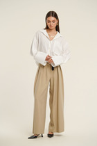 Комфортные брюки на резинке идеально дополняют верх, обеспечивая свободу движений. Свободный крой и лёгкая драпировка бархата создают элегантный, непринуждённый силуэт. Брюки легко комбинируются с обувью на каблуке или балетками, делая образ завершённым и гармоничным