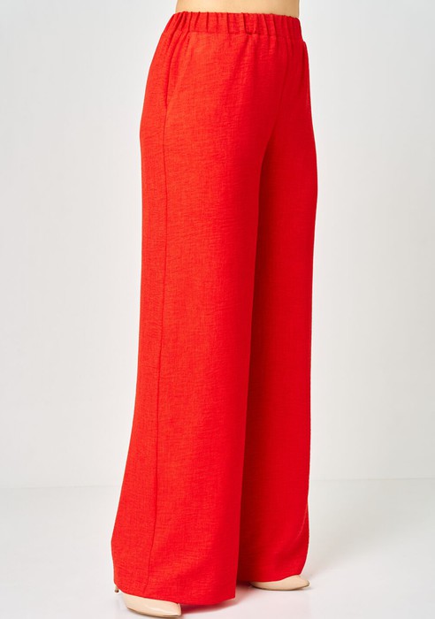 Брюки женские шикарного кроя "палаццо" на притачном поясе. Пояс по кругу на широкой резинке, что дает возможность чувствовать свободу движений. В боковых швах обработаны карманы, коротые дополняют функциональности модели и удобсто в носке.