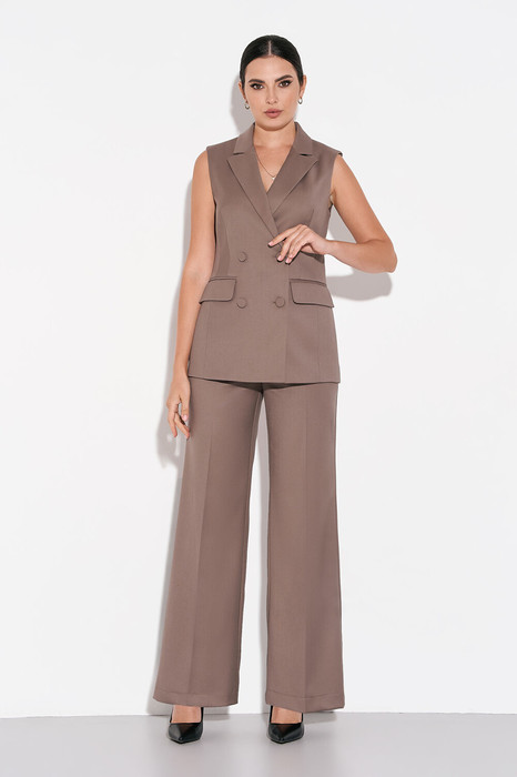 Женские брюки выполнены из костюмной ткани высокого качества. Брюки классические со стрелками полуприлегающего силуэта в области талии и бедер, прямые к низу. Изделие застегивается на молнию, петлю и пуговицу.