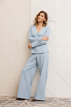 Брюки молодежные из трикотажного гладкокрашенного полотна «флис», длинные, на притачном поясе с эластичной тесьмой внутри и шнурком, продетым через две петли в центре пояса, с карманами в боковых швах и эластичной тесьмой по низу.