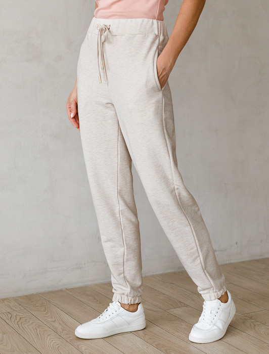Состав: 80%Хлопок 20%ПЭ Параметры модели на первом фото: Рост 172, бюст 88, талия 64, бедра 88Брюки выполнены из премиального футера трехнитки без начеса. Модель дополнена эластичным поясом на резинке и хлопковым шнурком с золотистой фурнитурой. По бокам два кармана. Наличие эластана в составе гарантирует формоустойчивость и износостойкость изделия. Изделие сочетается в костюме с худи D49.049