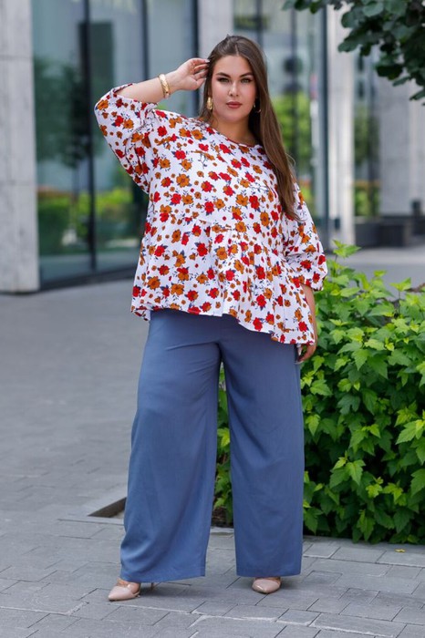 Свободные брюки из "дышащей" штапельной ткани прямого силуэта. Модель с комфортной высокой посадкой на талии. По переду брюки с наклонными карманами. Верх с эластичным поясом. Отличный вариант для жаркой погоды.