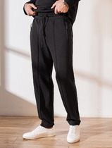 Брюки мужские из трикотажного полотна "лининг" свободного покроя, со смещенными к центрам передних половин боковыми швами, карманами в боковых швах и притачным поясом с эластичной тесьмой внутри. Нижние срезы обработаны подгибкой с эластичной тесьмой. Для регулирования степени прилегания изделия по талии предусмотрен шнурок, вставленный через две обметанные петли в центре пояса спереди.