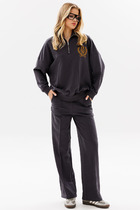Брюки с накладными карманами свободного кроя, верхний срез представлен широкой резинкой.