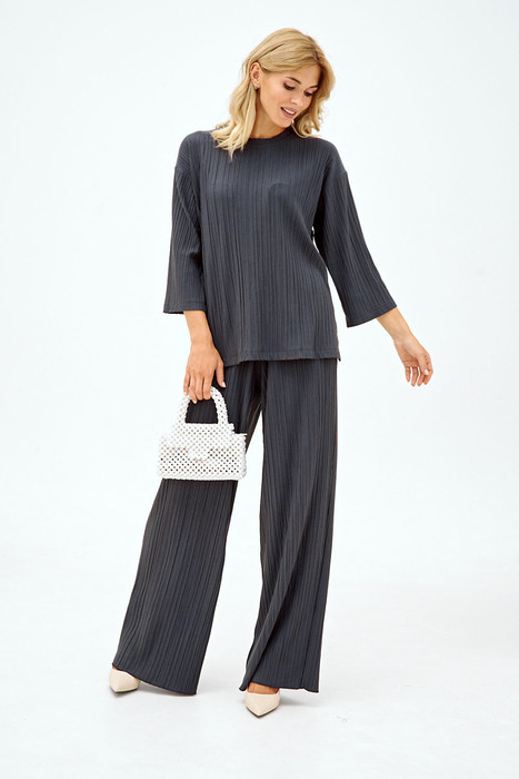 Элегантные брюки из плиссированного трикотажа свободного кроя, верхний срез собран на резинку. От бёдер максимально расклешенные, создают имитацию юбки.