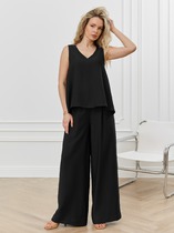 Брюки свободного кроя, верхний срез представлен широкой резинкой, с карманами. По центру правой брючины расположена планка с функционирующими петлями и пуговицами.