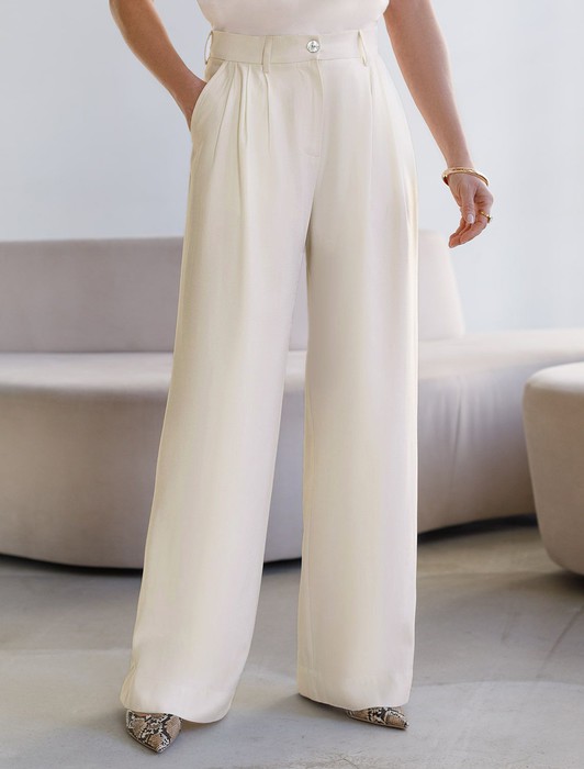 Состав: 92%Лиоцелл (Вис) 8%ПЭБрюки палаццо натурального белого цвета выполнены из плотного лиоцелла. Лиоцелл это более дорогой и экологичный вариант вискозы, очень прочный и шелковистый. Ткань отличается от регулярной коллекции из лиоцелла - она содержит еще больше лиоцелла (92%), благодаря чему имеет более нежную шелковистую фактуру. Свободные прямые брюки с высокой посадкой визуально вытягивают и стройнят фигуру. Удобные карманы по бокам и свободный крой делают эти брюки базовым элементом гардероба. Летние брюки отлично сочетаются с монохромным верхом, с ними можно создавать эффектные наряды как на выход, так и для ежедневных рабочих дел или простых прогулок, от делового шика до повседневного кэжуал.