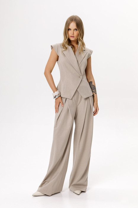 Брюки-палаццо со складками и высокой посадкой (приобрести жилет с фото можно по арт. 6543).