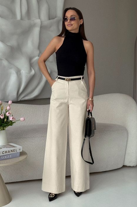 Промеры на примере 42 р.: Длина изделия по боковому шву с учетом пояса 114 см, ОТ - 68 см, ОБ - 94 см. Ширина(1/2) брюк по низу 31,5 см.