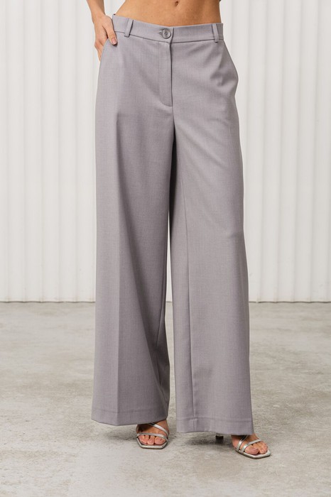 Дизайн: брюки с высокой посадкой и широким кроем, что делает их удобными и стильными. Деталь в виде пуговицы на поясе придаёт изделию оригинальность;
