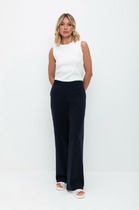Брюки из нарядной полупрозрачной ткани «органза», прямые, широкие. Средняя посадка, пояс притачной, застежка спереди на молнию и декоративную пуговицу. Брюки с глубокими складками по переду. Брюки на подкладке в виде шорт.