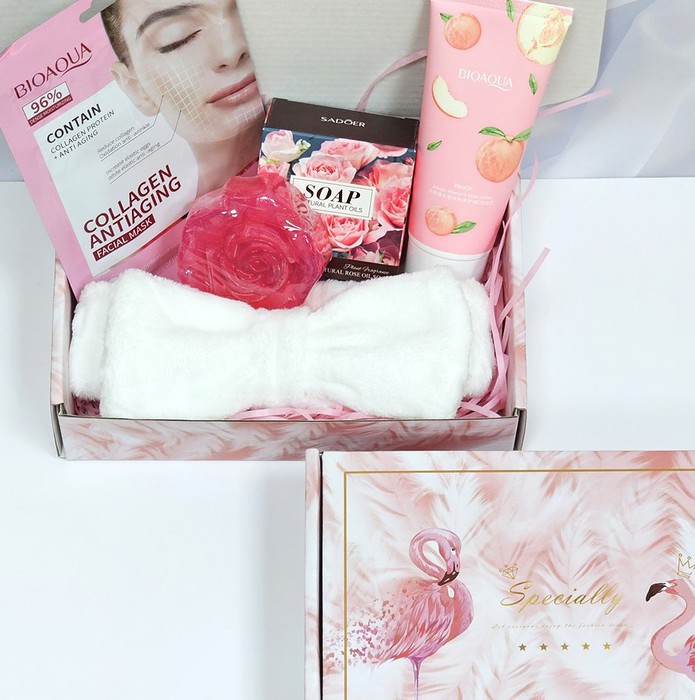 Совместные покупки Челябинск Косметика и парфюмерия Тени — Бьюти-бокс Фламинго (Повязка + Мыло + Лосьон для тела + Маска)