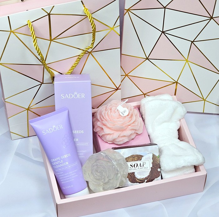 Бьюти-бокс + Подарочный пакет (Пенка, Свеча, Мыло, Повязка)