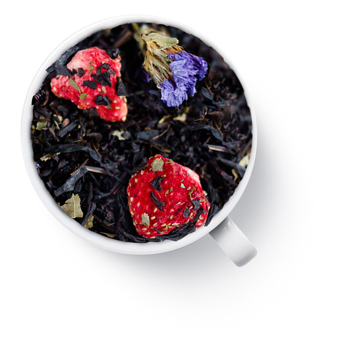 Краткое описание: Чай черный ароматизированный с ягодами клубники, листьями грецкого ореха, цветами незабудки. Чай обладает умеренно терпким вкусом со сладкими нотами клубники и чудесным клубнично-ванильным ароматом. В послевкусии легкая терпкость переходит в нежное ванильное послевкусие. Цвет хорошо заваренного чая - темный коньяк. Букет нежного и сладкого напитка можно мягко оттенить сахаром.