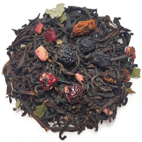 Чай черный индийский, ягоды облепихи, кусочки клюквы, ягоды брусники, плоды аронии, листья смородины, аромат брусники