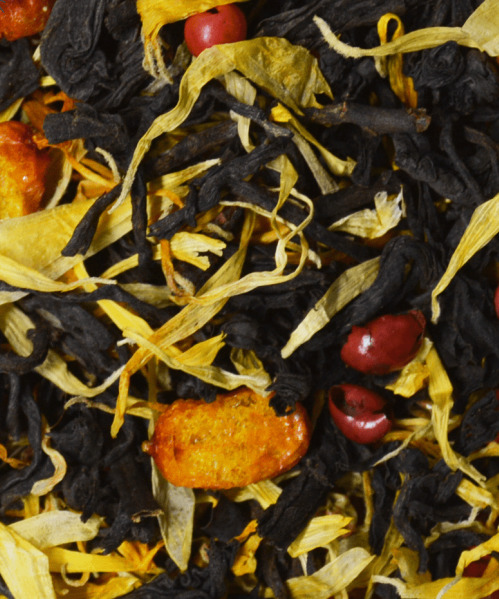 Купаж из классических черных индийских чаев с добавлением сублимированных ягод облепихи, розового перца и лепестков календулы. Содержит пищевые ароматические масла.