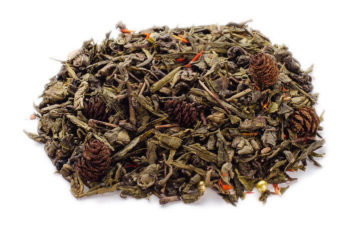 Краткое описание: Чай зелёный сенча и ганпаудер с добавлением лепестков сафлора, шишек ольхи, золотого драже и ароматом шампанского.