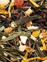СОСТАВ: Купаж на основе зеленого китайского чая с добавлением каркаде, лемонграсса, цедр апельсина, лепестков календулы. Содержит пищевые ароматические масла.Фруктово-цветочная смесь успокаивает нервную систему и восстанавливает эмоциональное равновесие. Вкусный и ароматный напиток идеально подходит для вечернего чаепития.
