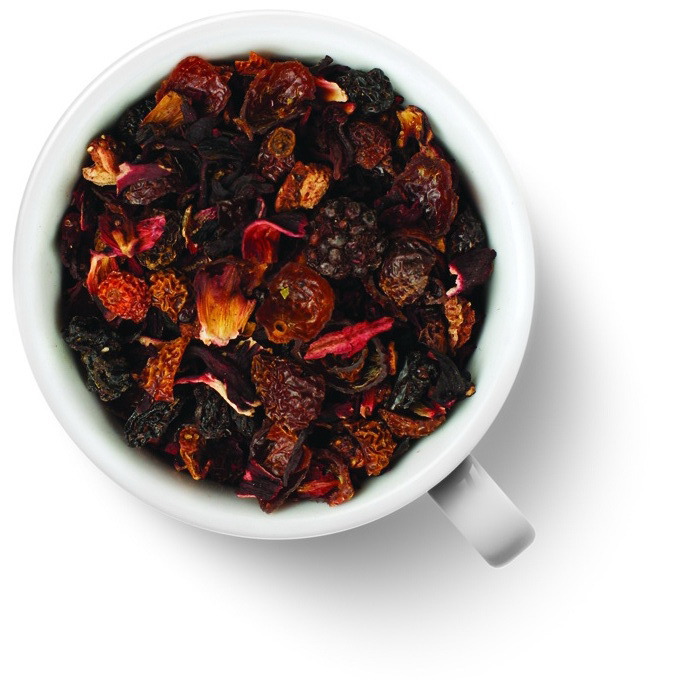 Краткое описание: Чайный напиток на основе гибискуса с добавлением шиповника, изюма, кусочков ежевики клубники и нежным карамельным ароматом.