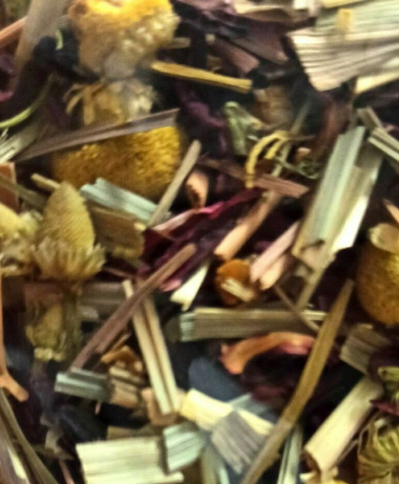 СОСТАВ: каркаде, лемонграсс, цедра шиповника, ромашка, рябина черная. Насыщенный, орехового цвета настой пахнет ромашкой с фруктово-цветочным оттенком. Вкус настоя нежный, без сладости, с нотой шиповника в послевкусии.
